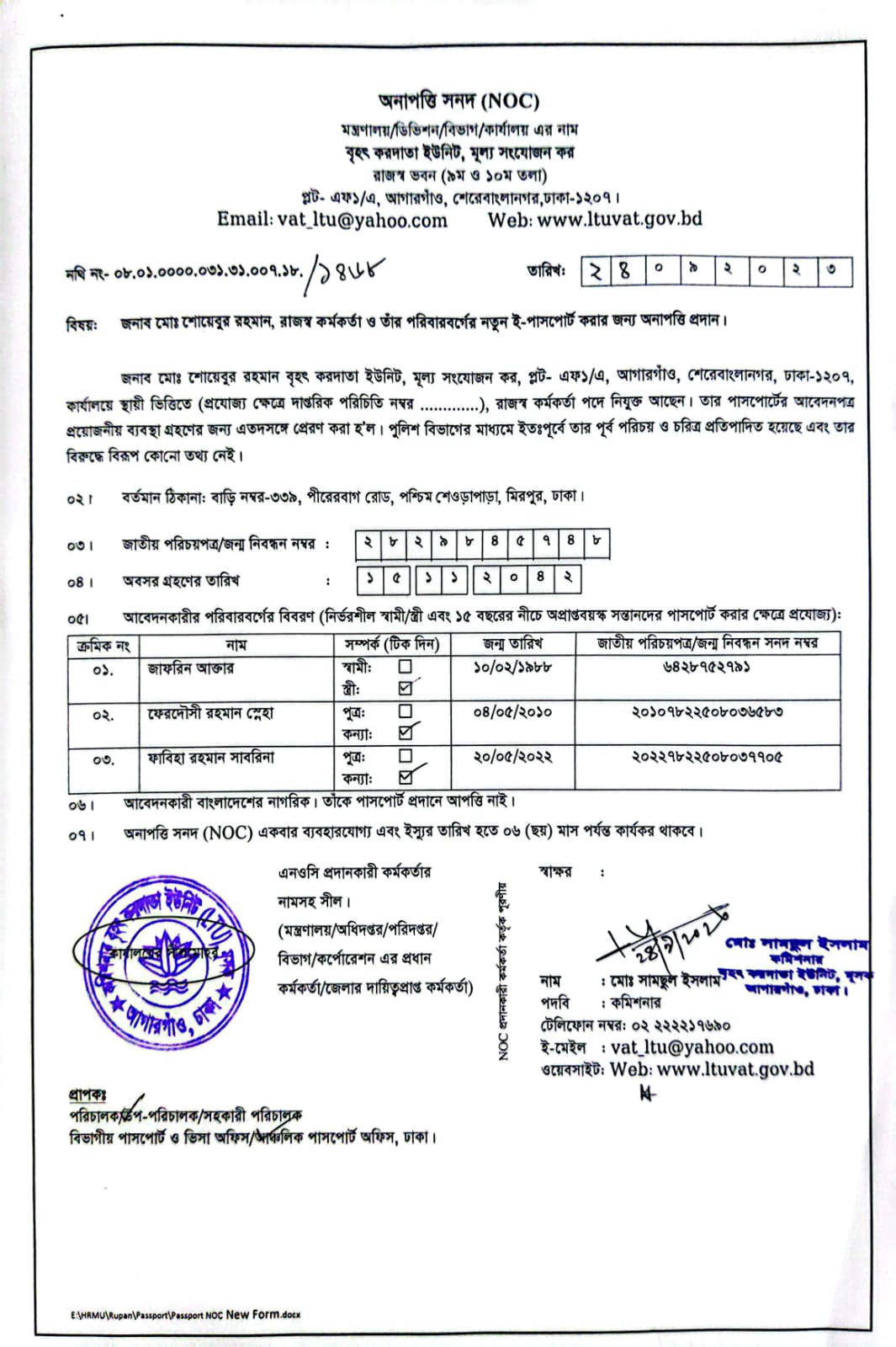 | 30 | Passport NOC (জনাব মোঃ শোয়েবুর রহমান) | 06-Apr-2026 |